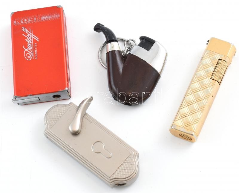 Beschreibung: 4 db öngyújtó, közötte érdekes kilincses