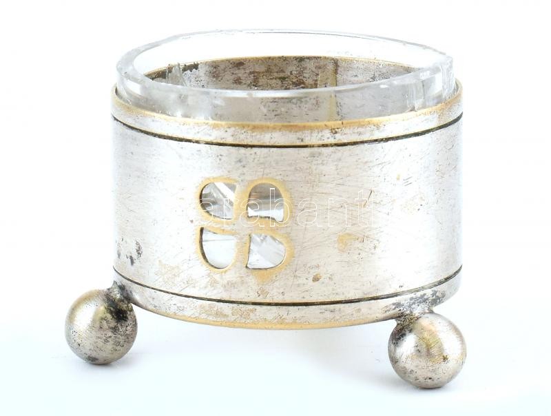 Alpakka fűszertartó, üvegbetéttel, kopásnyomokkal, d: 4,5 cm https://www.darabanth.com/de/415-Fernauktion/415.0/Kunst-Dokumente-andere-Sammelgebiete/Flohmarkt~500012/Alpakka-fuszertarto-uvegbetettel-kopasnyomokkal-d-4-5-cm~II2599572