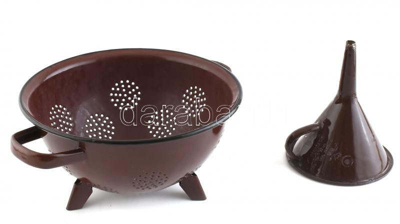 Retró zománcozott fém tésztaszűrő, d: 22,5 cm + budafoki tölcsér, kis ... https://www.darabanth.com/de/415-Fernauktion/415.0/Kunst-Dokumente-andere-Sammelgebiete/Flohmarkt~500012/Retro-zomancozott-fem-tesztaszuro-d-22-5-cm-plus-budafoki-tolcser-kis-serulesekkel-d-12~II2602252