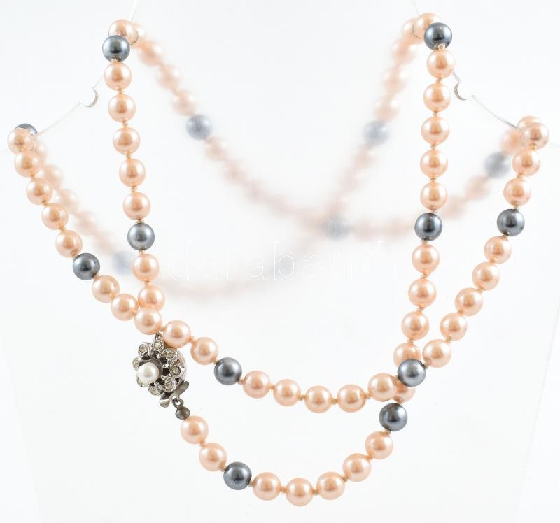 Beschreibung: Teklagyöngy nyaklánc, h: 80 cm + fülbevalópár