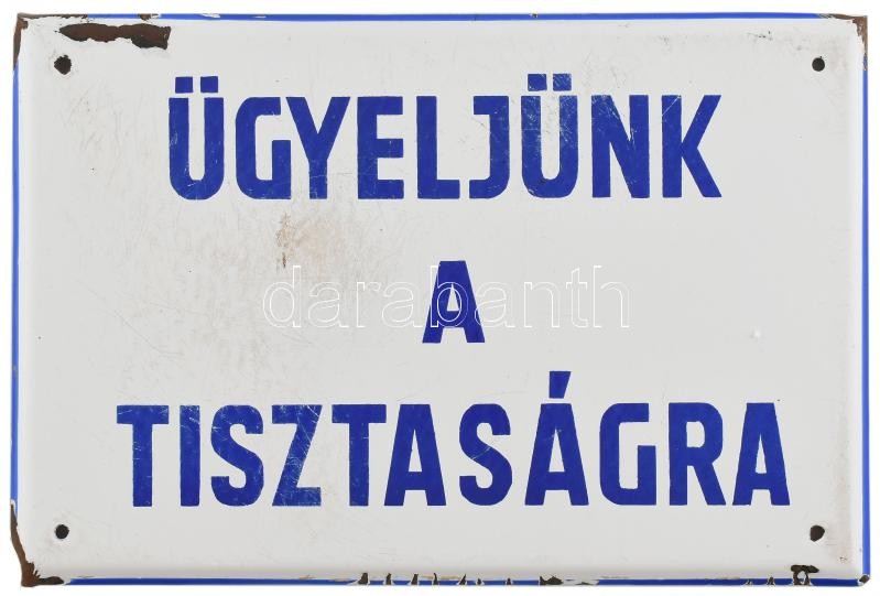 Ügyeljünk a tisztaságra. Régi zománc tábla, apró sérülésekkel. 20x30 c... https://www.darabanth.com/de/415-Fernauktion/415.0/Kunst-Dokumente-andere-Sammelgebiete/Flohmarkt~500012/Ugyeljunk-a-tisztasagra-Regi-zomanc-tabla-apro-serulesekkel-20x30-cm~II2605251