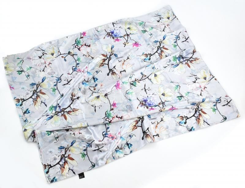 Beschreibung: Virágmintás ezüstszínű selyem sál, kendő, kb. 166x134 cm