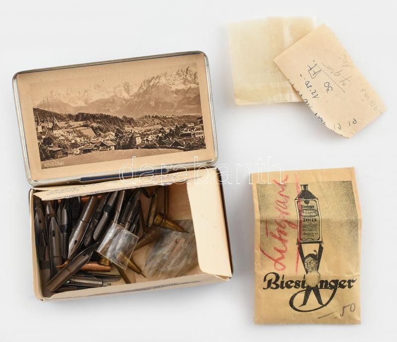 kb. 40 db régi tollhegy fém dobozban https://www.darabanth.com/de/415-Fernauktion/415.0/Kunst-Dokumente-andere-Sammelgebiete/Flohmarkt~500012/kb-40-db-regi-tollhegy-fem-dobozban~II2601815