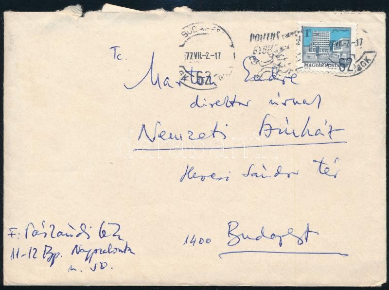 Beschreibung: 1977 Páskándi Géza (1933-1995) Ãró géppel Ãrt, saját kézzel aláÃrt levele Marton Endre, a Nemzeti SzÃnház igazgatója részére, melyben kéri a lehetÅ‘ legnagyobb elÅ‘leget szerzÅ‘déskötéskor, eredeti borÃtékjában