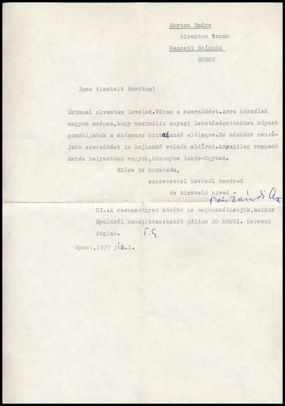 1977 Páskándi Géza (1933-1995) Ãró géppel Ãrt, saját kézzel aláÃrt lev... https://www.darabanth.com/de/415-Fernauktion/415.0/Kunst-Dokumente-andere-Sammelgebiete/Historische-Dokumenten-Handschriften~500019/1977-Paskandi-Geza-1933-1995-iro-geppel-irt-sajat-kezzel-alairt-levele-Marton-Endre-a~II2602763
