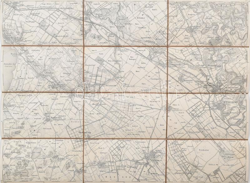 cca 1880-1900 Ung. Altenburg Zone 14. Col. XVI. / Mosonmagyaróvár és környéke, osztrák katonai térkép, 1 : 75.000, vászonra kasírozva, körbevágott, 51x38 cm