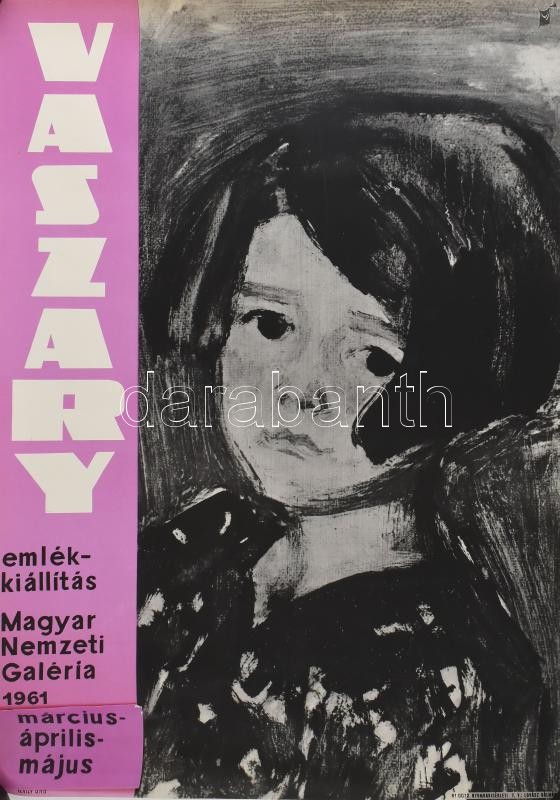 1961 Vaszary emlékkiállítás. Magyar Nemzeti Galéria. Plakát, ofszet, papír. A kiállítás időtartama ráragasztott papírlappal módosítva. 49,5x67,5 cm. Feltekerve.