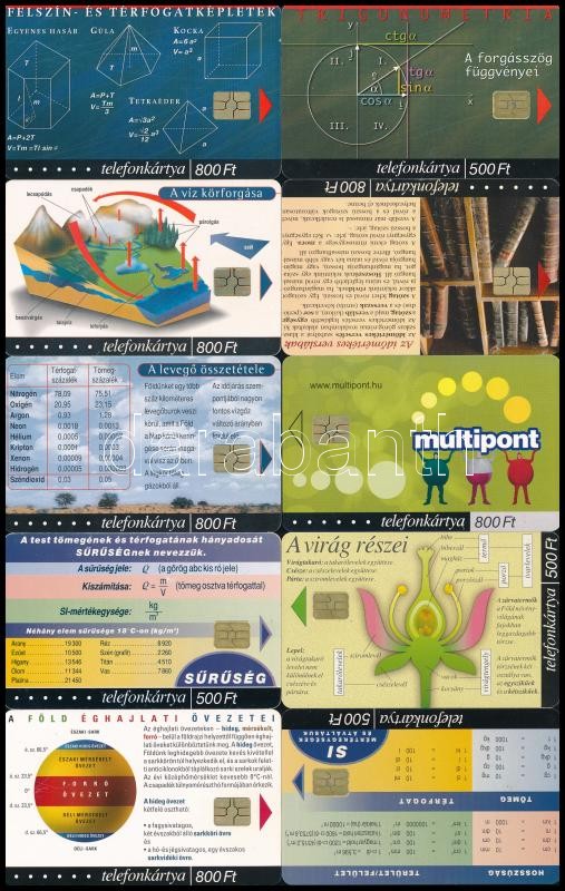 Beschreibung: 2000-2003 14 db különféle MATÁV telefonkártya (matematikai képletek, természettudományok, stb.)