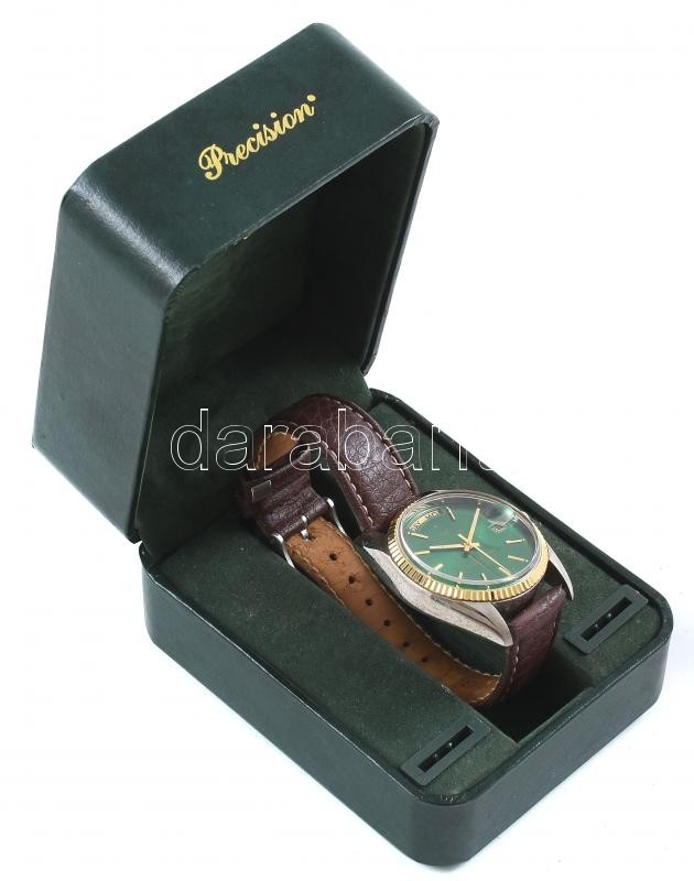 Beschreibung: Waltham kvarc férfi karóra, naptár funkcióval, vízálló, bőr szíjjal, jó állapotban, eredeti dobozában, d: 34 mm