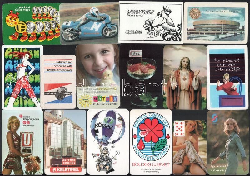 Beschreibung: 30 db vegyes kártyanaptár, közte egy erotikus