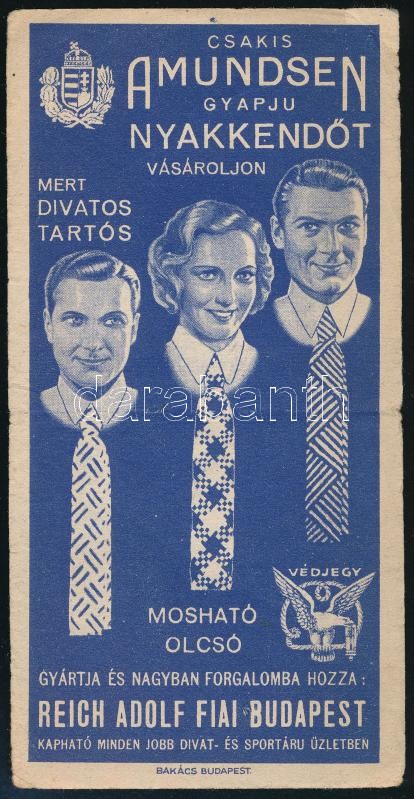 Reich Rudolf Fiai Amundsen nyakkendő számolócédula, hajtott https://www.darabanth.com/de/415-Fernauktion/415.0/Kunst-Dokumente-andere-Sammelgebiete/Werbungen~500022/Reich-Rudolf-Fiai-Amundsen-nyakkendo-szamolocedula-hajtott~II2605106