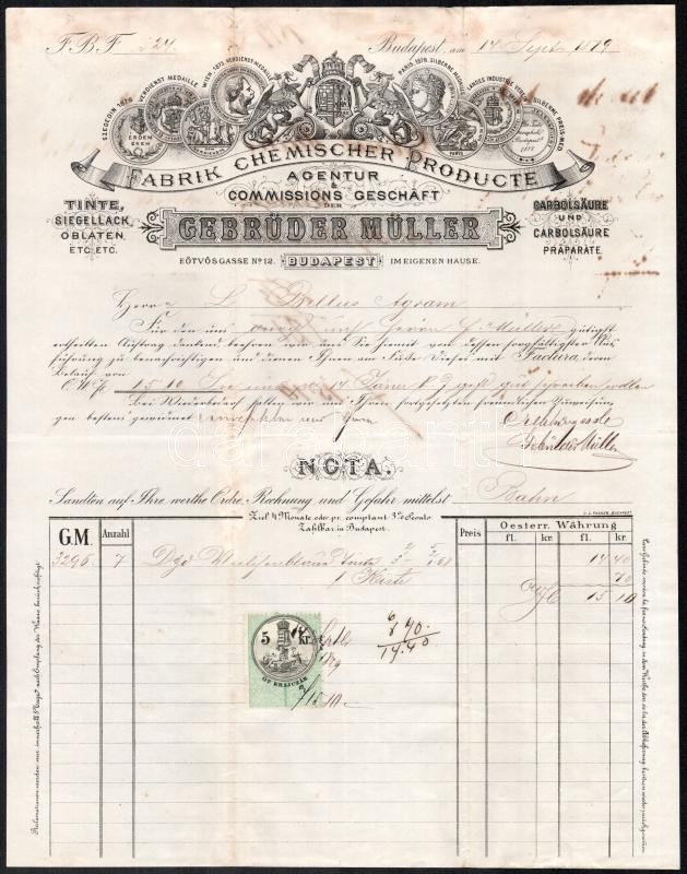 cca 1880 6 db klf díszes fejléces számla. https://www.darabanth.com/de/415-Fernauktion/415.0/Kunst-Dokumente-andere-Sammelgebiete/Werbungen~500022/cca-1880-6-db-klf-diszes-fejleces-szamla~II2568021