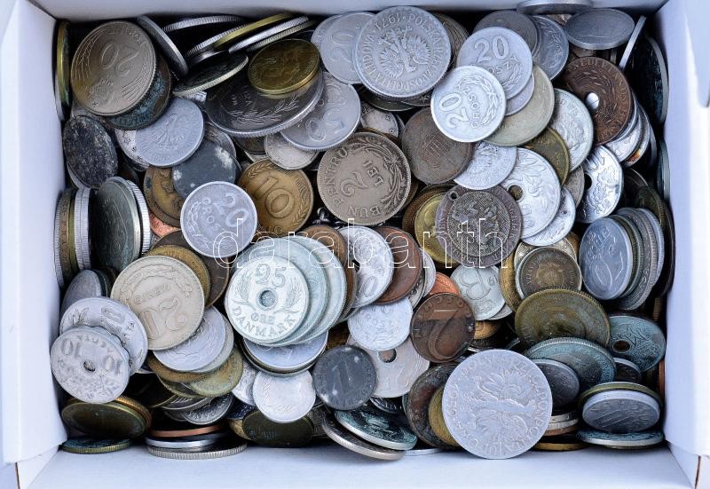 Vegyes magyar és külföldi érmetétel ~1,8kg súlyban, közte 1950 előtti érmék T:vegyes