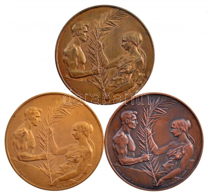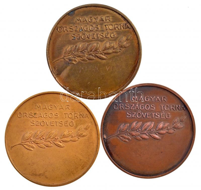 Damkó József (1872-1955) / Exner Károly (1850-1919) DN "Magyar Országos Torna Szövetség" kétoldalas aranyozott Br és Br díjérem (3x) (45mm) T:1- patina, kopott aranyozás, kis ph