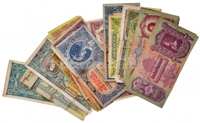 Beschreibung: 27 db vegyes, főleg pengő bankjegy tétel, közte 1920. 20K "2a 025 297101" + 1930. 100P (2x) T:III-IV közte szakadások, folt, anyaghiány, firka
