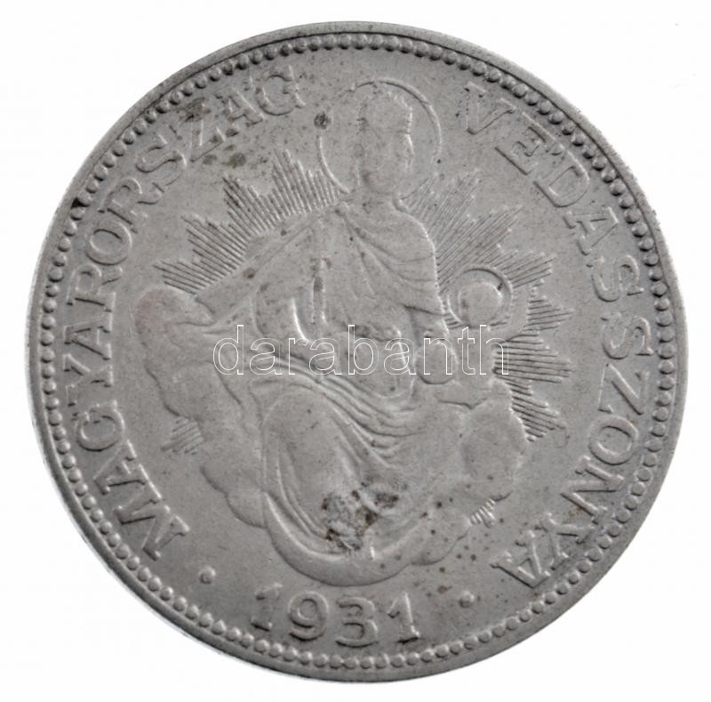 1931. 2P Ag "Madonna" T:2- Adamo P7 https://www.darabanth.com/de/415-Fernauktion/415.0/Numismatik/Ungarische-Munzen-und-Munzen-mit-ungarischem-Munzzeichen~2000008/1931-2P-Ag-Madonna-T2-Adamo-P7~II2604554