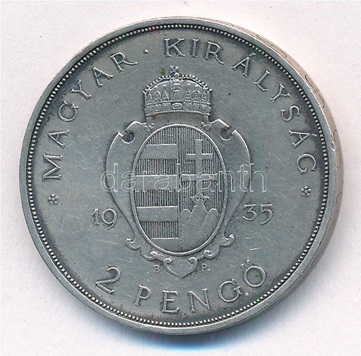 Adamo P7.1 https://www.darabanth.com/de/415-Fernauktion/415.0/Numismatik/Ungarische-Munzen-und-Munzen-mit-ungarischem-Munzzeichen~2000008/1935-2P-Ag-Pazmany-T1-2-patina-kis-ph-Adamo-P71~II2600669