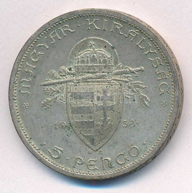 1938. 5P Ag "Szent István" T:2 patina Adamo P8.1 https://www.darabanth.com/de/415-Fernauktion/415.0/Numismatik/Ungarische-Munzen-und-Munzen-mit-ungarischem-Munzzeichen~2000008/1938-5P-Ag-Szent-Istvan-T2-patina-Adamo-P81~II2601620
