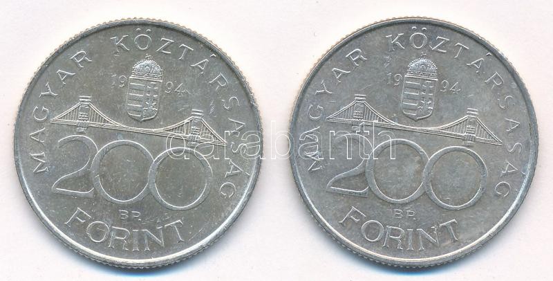 Beschreibung: 1994. 200Ft Ag "Deák" (2x) T:1-,2 Adamo F13.1