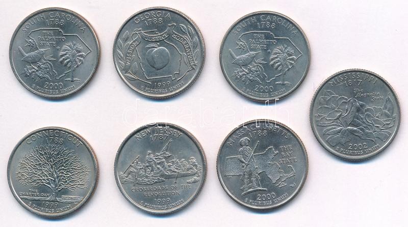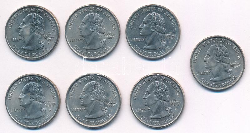 Amerikai Egyesült Államok 1999-2002. 25c Cu-Ni (7db/6xklf) T:1-,2 patina, karc USA 1999-2002. 25 Cents Cu-Ni (7pcs/6xdiff) C:AU,XF patina, scratches