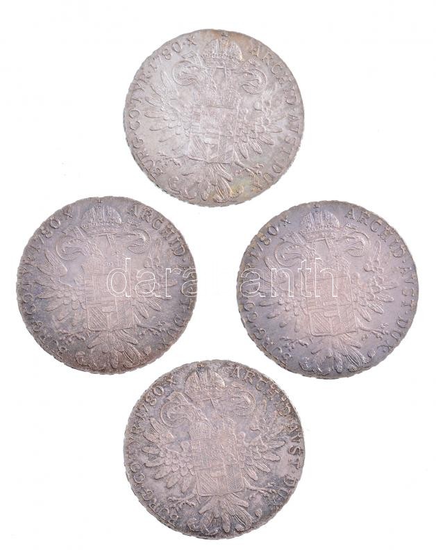 Ausztria 1780SF Tallér Ag "Mária Terézia" utánveret (4x) három darab közös dísztokban, német nyelvű tájékoztatóval T:1 patina Austria 1780SF Thaler Ag "Maria Theresia" restrike (4x) three pieces plastic display case with german language information sheet C:UNC patina Krause KM#T1