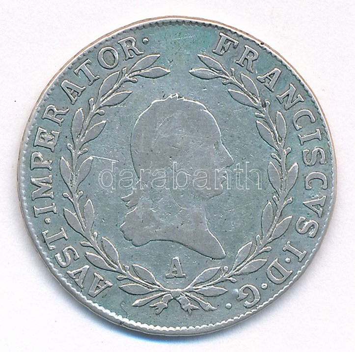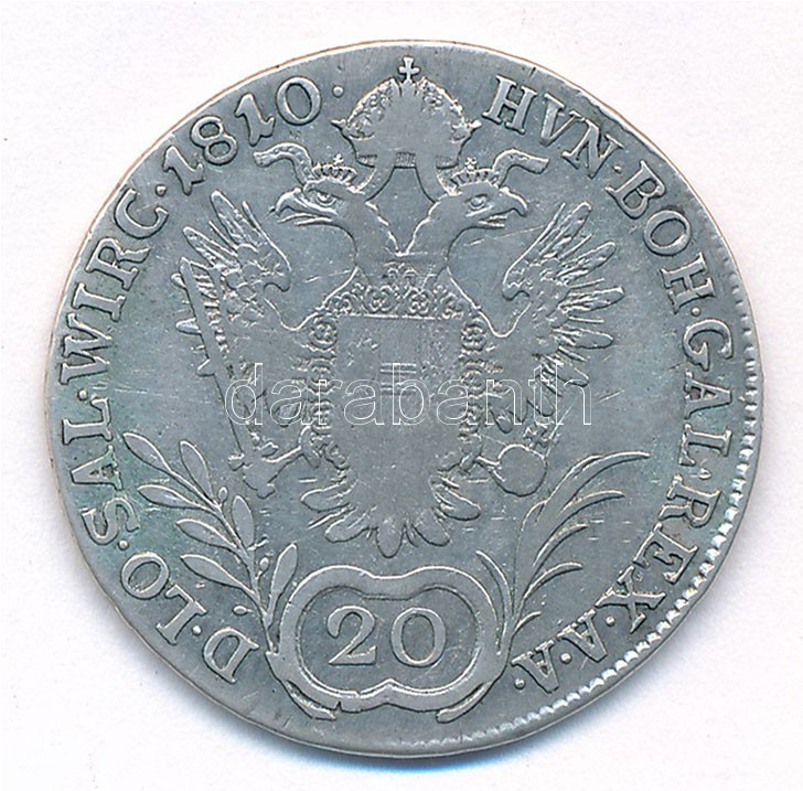 Aust... https://www.darabanth.com/de/415-Fernauktion/415.0/Numismatik/Weltweit-Munzen~2000015/Ausztria-1810A-20kr-Ag-I-Ferenc-T2-2-patina-karc-Austria-1810A-20-Kreuzer-Ag-Franz-I-CXF-V~II2602655