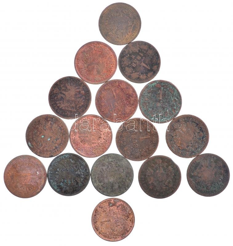 Austria 1858 A,B,E 1 Kreuzer Cu (16pcs/3xdiff) C:VF,F patina, edge error