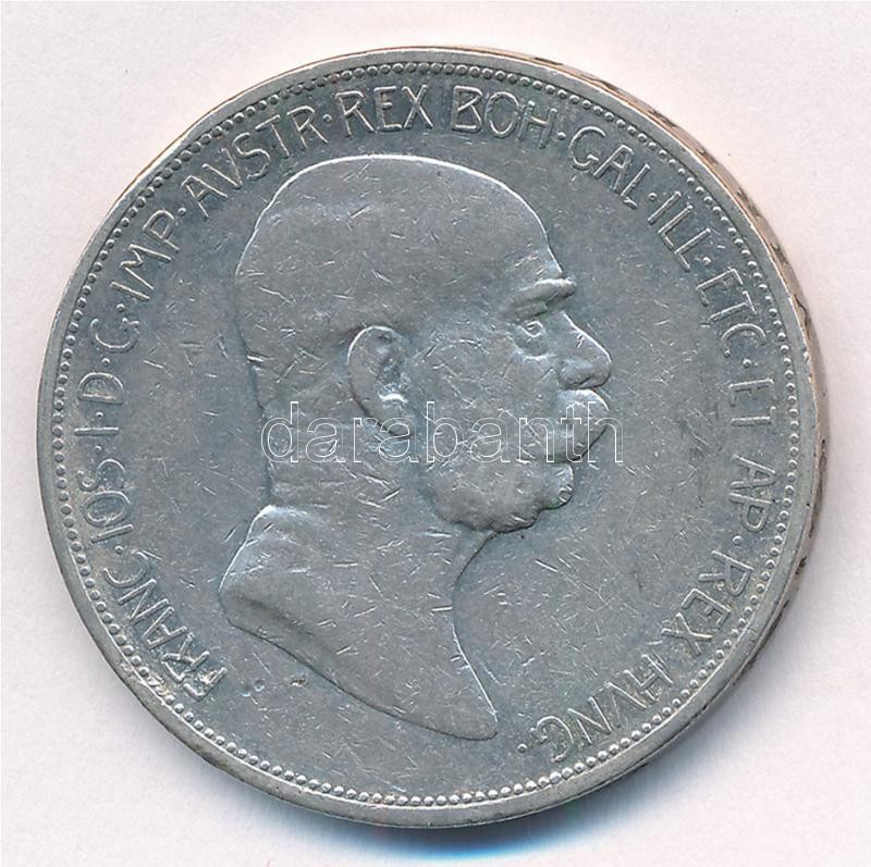 Austria 1909. 5 Corona Ag "Franz Joseph" C:XF,VF patina, edge error, small ding