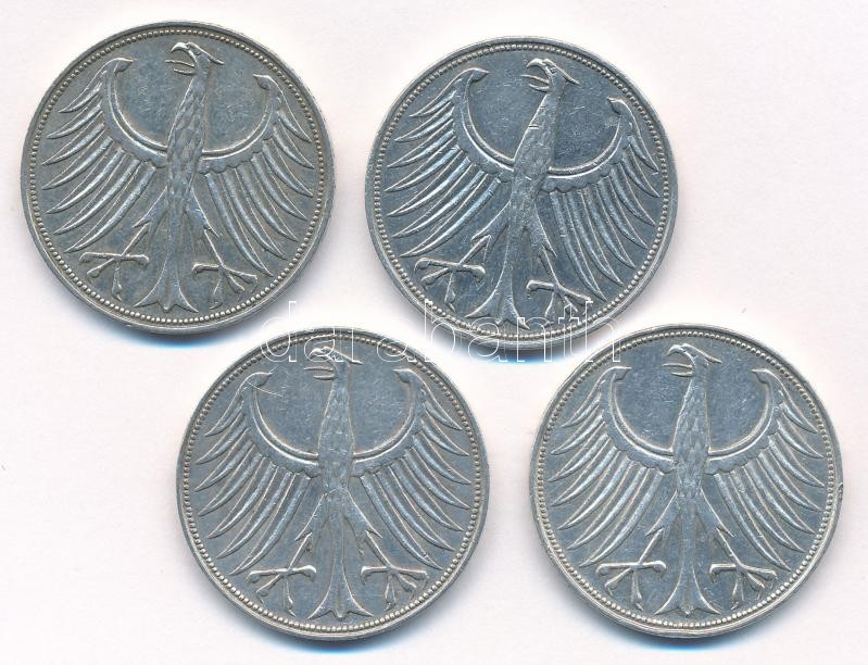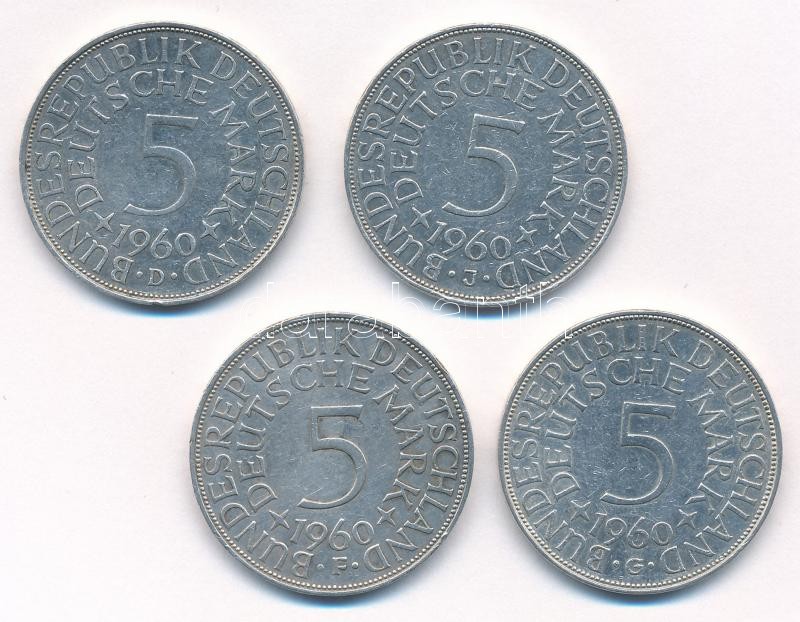 NSZK 1960. 5M Ag (4xklf) D-F-G-J T:2 patina, ph FRG 1960. 5 Mark Ag (4xdiff) D-F-G-J C:XF patina, edge error Krause KM#112.1