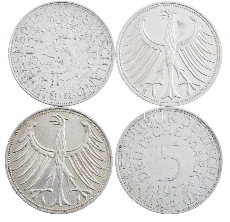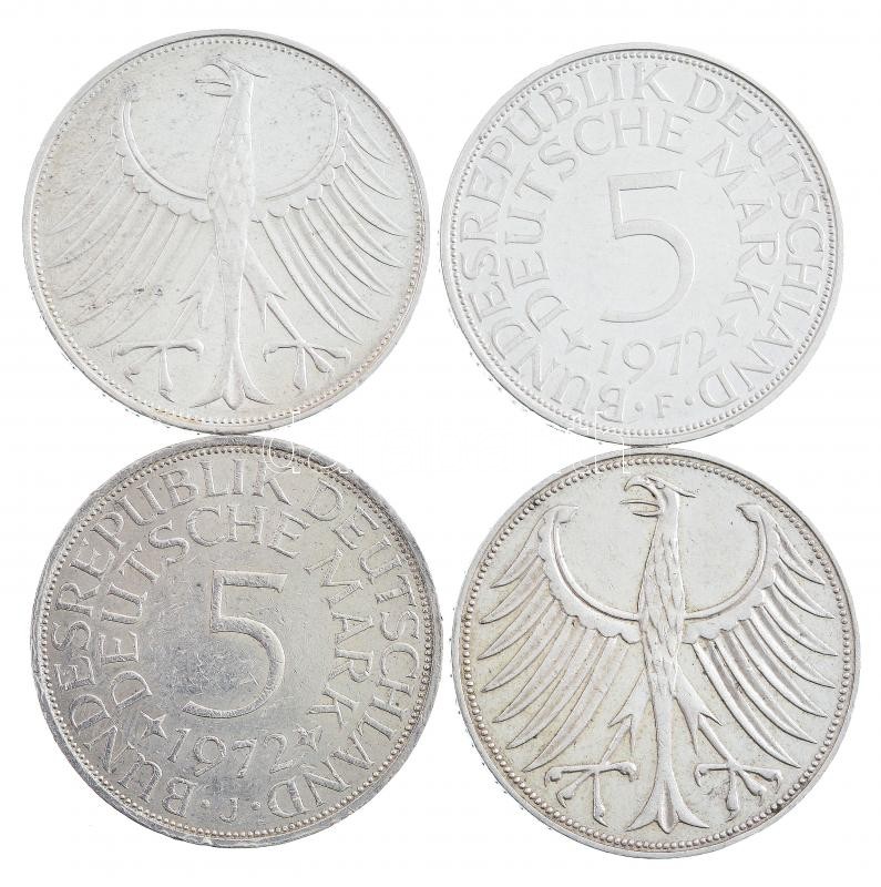 NSZK 1972. 5M Ag (4xklf) D-F-G-J T:2 patina, ph, karc FRG 1972. 5 Mark Ag (4xdiff) D-F-G-J C:XF patina, edge error, scratches Krause KM#112.1