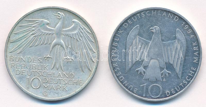 NSZK 1972G 10M Ag "Müncheni Olimpia - Spirál" + Németország 1994A 10M Ag "Német Ellenállás 1933-1945" T:1- (PP,BU) patina FRG 1972G 10 Mark Ag "Münich Olympics - Spiral" + Germany 1994A 10 Mark Ag "German Resistance 1933-1945" C:AU (PP,BU) patina Krause KM#134.1, KM#182