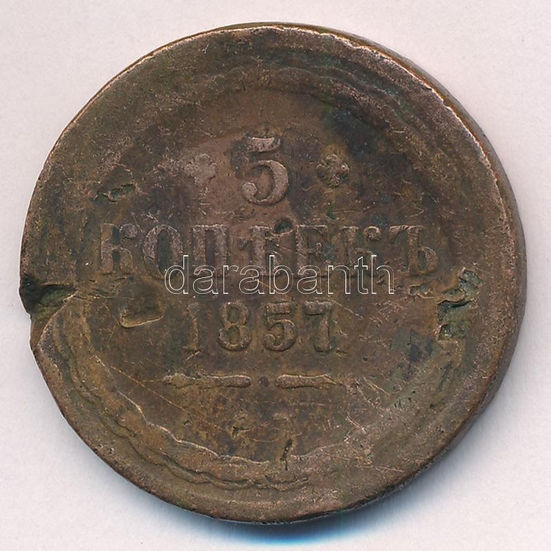 Orosz Birodalom 1857. 5k Cu T:3 ph. Russian Empire 1857. 5 Kopeks Cu C:F edge error Krause C# 152.1