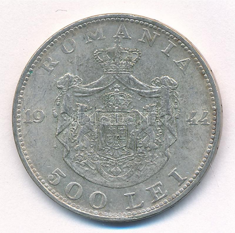 Románia 1944. 500L Ag "I. Mihály" T:1- patina Romania 1944. ... https://www.darabanth.com/de/415-Fernauktion/415.0/Numismatik/Weltweit-Munzen~2000015/Romania-1944-500L-Ag-I-Mihaly-T1-patina-Romania-1944-500-Lei-Ag-Mihai-I-CAU-patina-Kraus~II2575349
