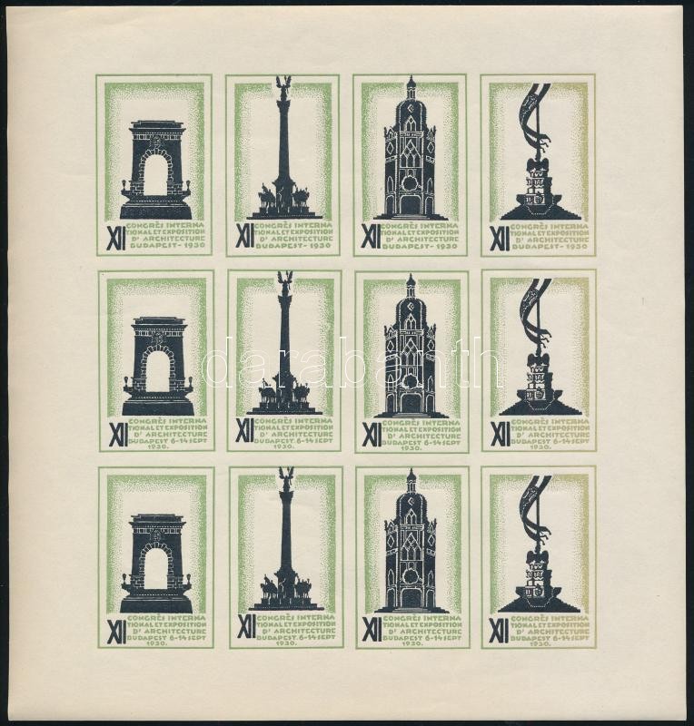 Beschreibung: 1930 Nemzetközi építészeti kongresszus, Budapest 12-es vágott levélzáró ív