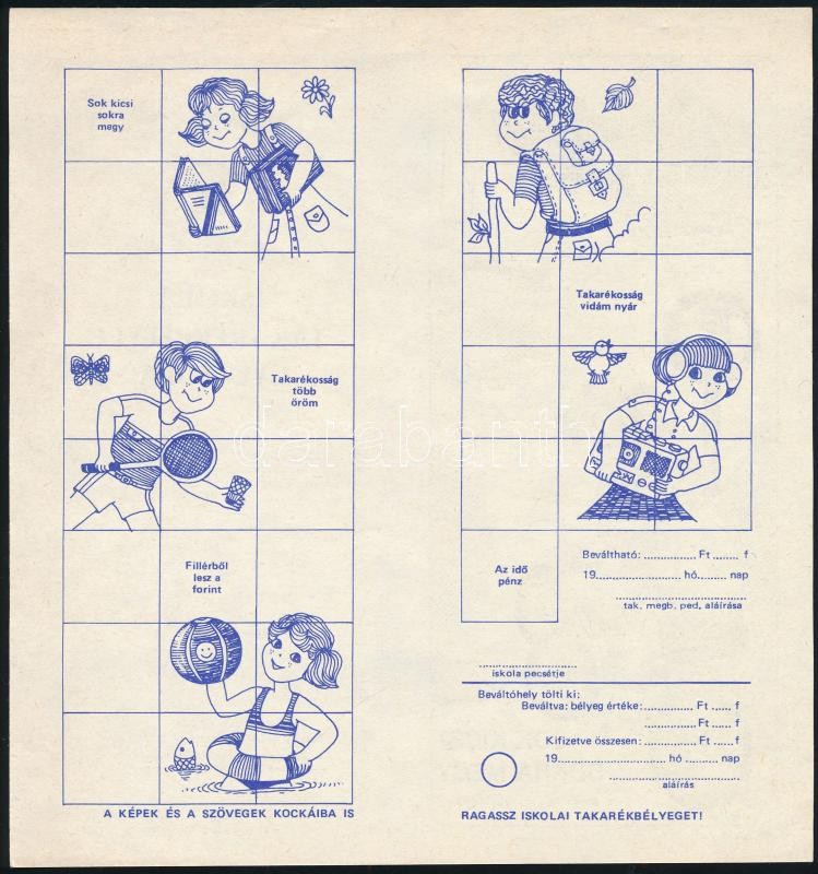 ~1985 Iskolai Takarékbélyeg gyűjtőlap https://www.darabanth.com/de/415-Fernauktion/415.0/Philatelie-und-Postgeschichte-Ungarn/Paraphilatelie~500016/7E1985-Iskolai-Takarekbelyeg-gyujtolap~II2600420