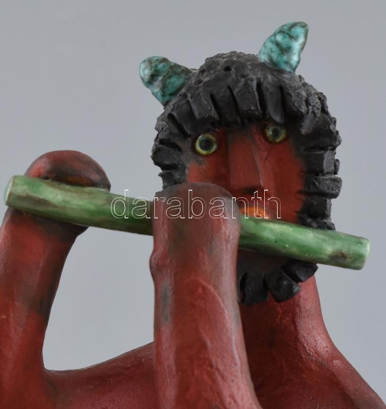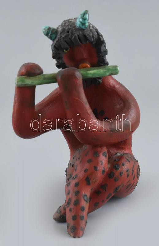 Beschreibung: Izsépy Margit: Faun, kerámia figura, kézzel festett, jelzett, lábánál apró lepattanás, m: 19cm