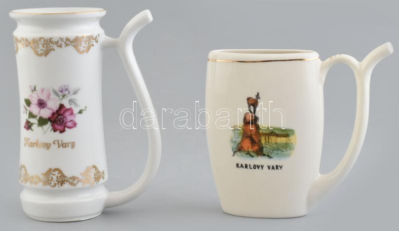 Beschreibung: 2 db Karlovy Vary cseh porcelán kúrapohár, matricás, jelzett, minimális kopással, m: 12 cm, 14,5 cm