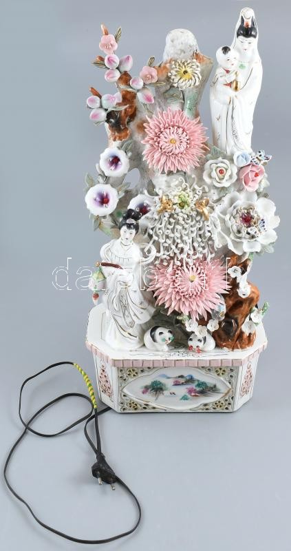 Beschreibung: Kínai porcelán asztali dísz, világít, zenél, működik, jelzés nélkül, sérült, m:52cm