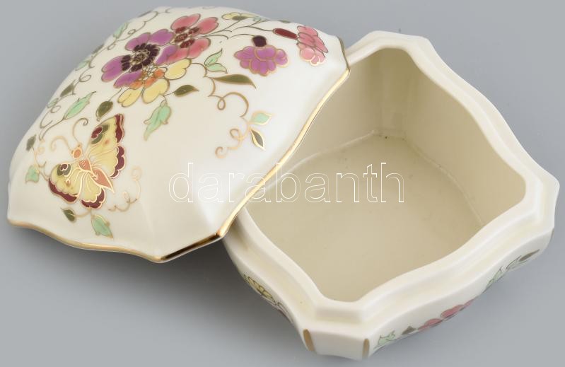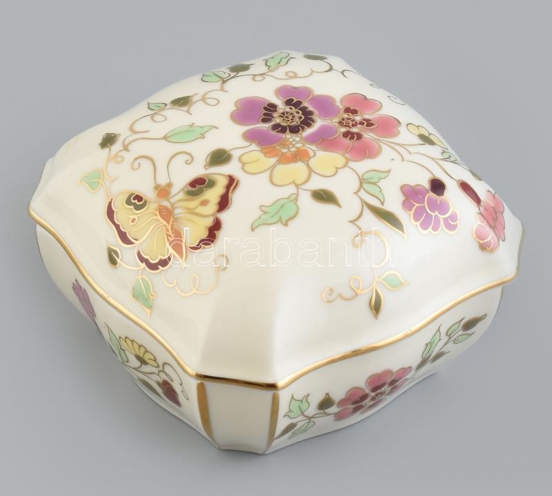 Beschreibung: Zsolnay pillangó mintás bonbonier, kézzel festett, jelzett, hibátlan, 11x11cm