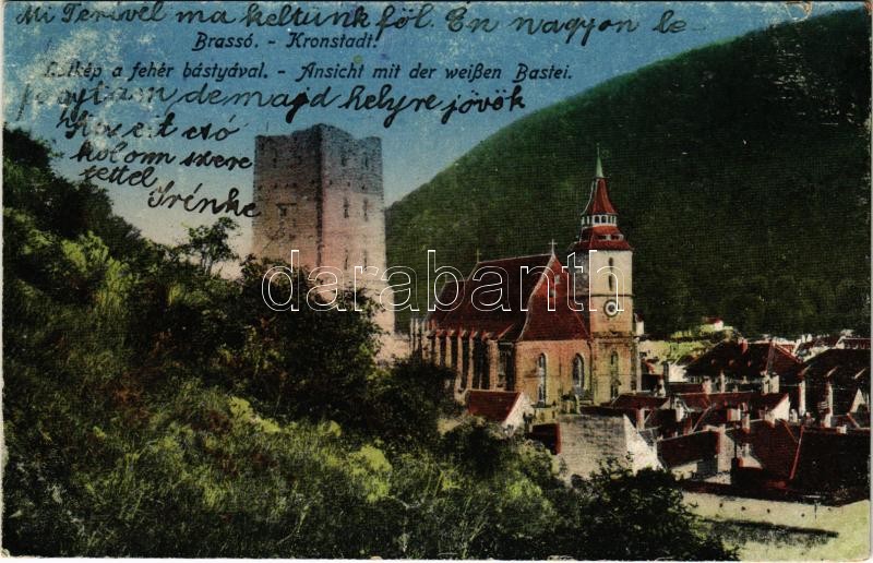 1918 Brassó, Kronstadt, Brasov; látkép a fehér bástyával / Ansicht mit... https://www.darabanth.com/de/416-Fernauktion/416.0/Ansichtskarten/Siebenburgen~2000011/1918-Brasso-Kronstadt-Brasov-latkep-a-feher-bastyaval-Ansicht-mit-der-weiC39Fen-Bastei-ge~II2610417