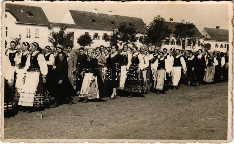 Beschreibung: 1939 Aldorf, Wallendorf, Unirea; Szász ünnepély, erdélyi folklór / Transylvanian folklore, Saxon procession. photo (fl)