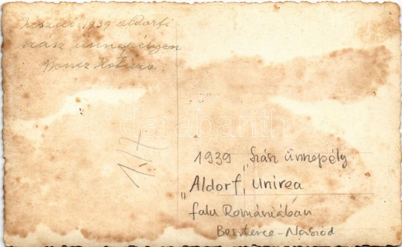1939 Aldorf, Wallendorf, Unirea; Szász ünnepély, erdélyi folklór / Tra... https://www.darabanth.com/de/416-Fernauktion/416.0/Ansichtskarten/Siebenburgen~2000011/1939-Aldorf-Wallendorf-Unirea-Szasz-unnepely-erdelyi-folklor-Transylvanian-folklore-Saxo~II2611874
