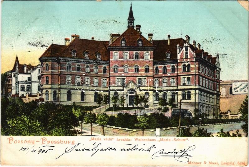 1905 Pozsony, Pressburg, Bratislava; Mária védő árvaház / Waisenhaus M... https://www.darabanth.com/de/416-Fernauktion/416.0/Ansichtskarten/Slowakei~2000010/1905-Pozsony-Pressburg-Bratislava-Maria-vedo-arvahaz-Waisenhaus-Maria-Schutz-orphanage-~II2620220