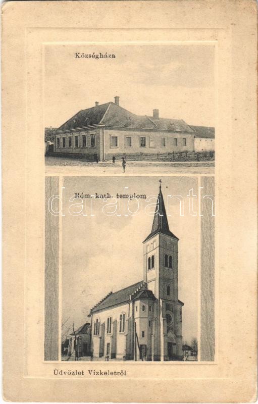 Beschreibung: 1918 Vízkelet, Cierny Brod; községháza, Római katolikus templom / town hall, church