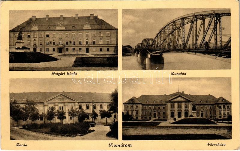 1939 Komárom, Komárno; Polgári iskola, Duna híd, Zárda, Városháza / sc... https://www.darabanth.com/de/416-Fernauktion/416.0/Ansichtskarten/Slowakei~2000010/1939-Komarom-Komarno-Polgari-iskola-Duna-hid-Zarda-Varoshaza-school-Danube-bridge-pr~II2612375
