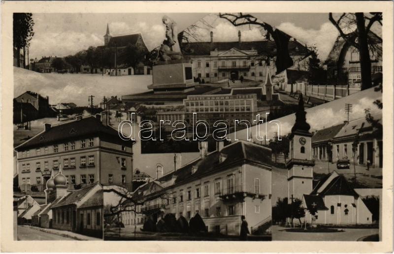 Beschreibung: 1946 Malacka, Malacky; mozaiklap zsinagógával / multi-view postcard with synagogue (kis szakadás / small tear)