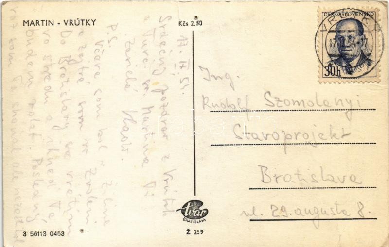 1954 Ruttka, Vrútky; Városháza / town hall (lyuk / pinhole) https://www.darabanth.com/de/416-Fernauktion/416.0/Ansichtskarten/Slowakei~2000010/1954-Ruttka-Vrutky-Varoshaza-town-hall-lyuk-pinhole~II2616938