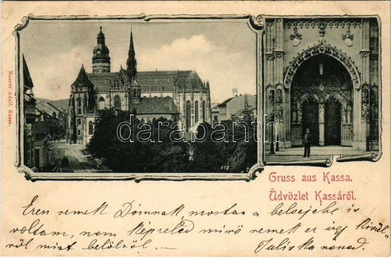 Kassa, Kosice; Székesegyház. Maurer Adolf kiadása / cathedral, gate. A... https://www.darabanth.com/de/416-Fernauktion/416.0/Ansichtskarten/Slowakei~2000010/Kassa-Kosice-Szekesegyhaz-Maurer-Adolf-kiadasa-cathedral-gate-Art-Nouveau-azott-sarok-~II2609154