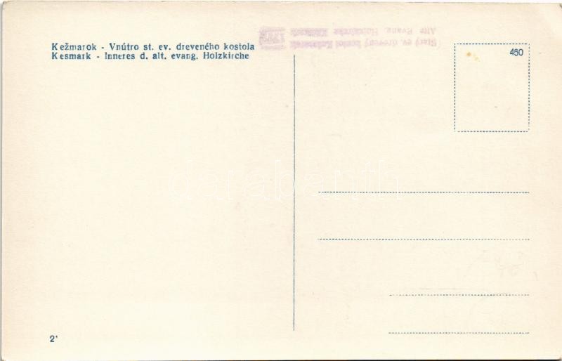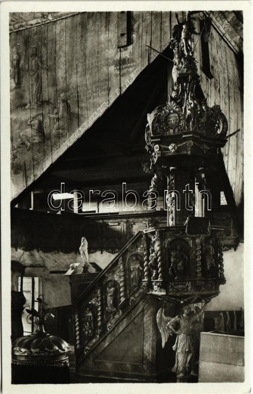 Késmárk, Kezmarok; Vnútro st. ev. dreveného kostola / Inneres d. alt. evang. Holzkirche / Régi evangélikus fatemplom belseje / Lutheran wooden church, interior