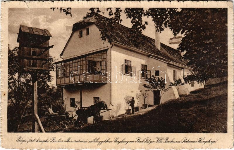 Beschreibung: Pöstyén, Piestany; Bacchus villa a ratnóczi szőlőhegyekben / villa in the vineyards of Ratnovce (kis szakadás / small tear)
